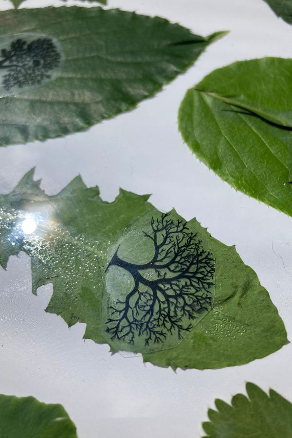 Nach einer Woche mit verschiedenen Belichtungsfenstern haben wir die Ergebnisse überprüft. Und gut, dass wir so viele Blätter ausprobiert haben – denn nur ganz wenige haben überhaupt funktioniert. Ich schätze, weniger als die Hälfte hat überhaupt Spuren gezeigt, und nur eine Handvoll war wirklich gut.