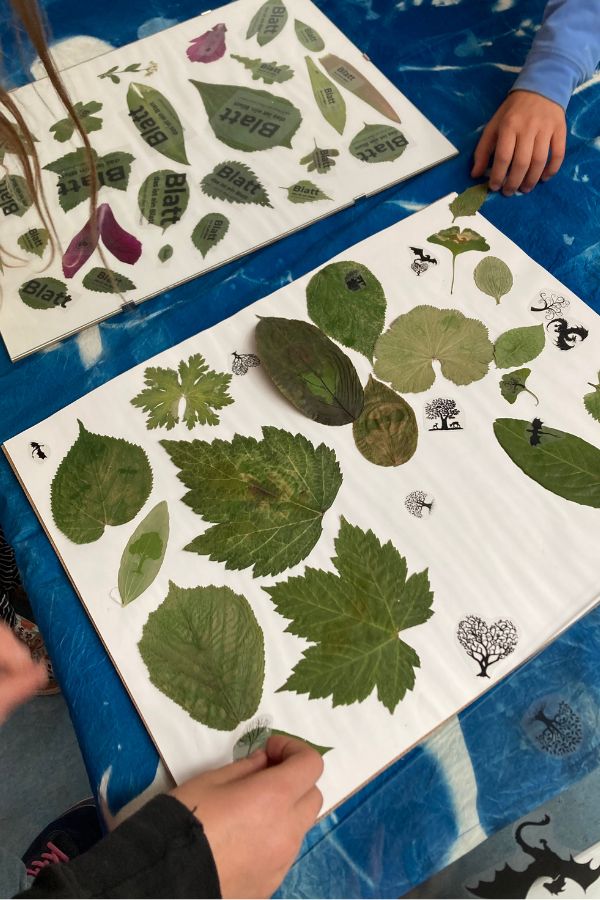 Ich fand die „Das ist ein Blatt“-Schablone ganz lustig, aber Bäume und Drachen kamen bei den Kindern irgendwie besser an 😉